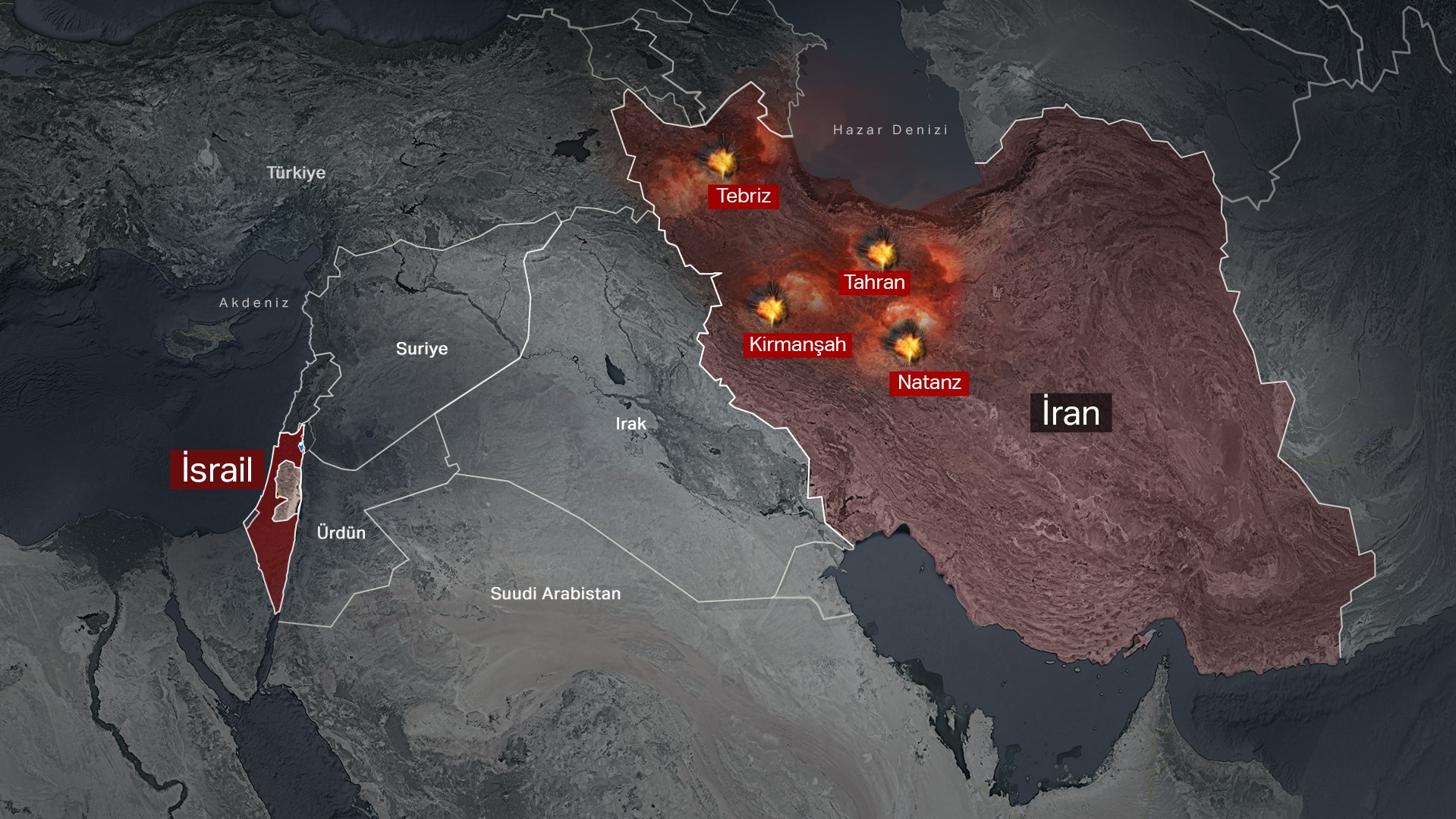 Saldırının Tahran’ın batısında gerçekleştiği bilgisi İran medyasına yansıdı. İran devlet televizyonu İran’ın kuzeyi güneyinde birçok noktadan şiddetli patlama sesleri duyulduğunu teyit etti.