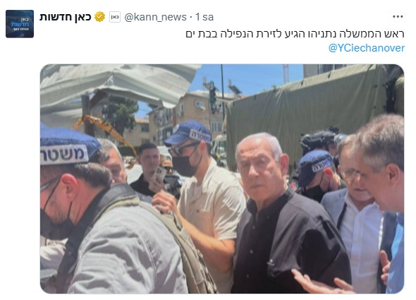 İsrail’in resmi KAN yayın kuruluşunun haberine nazaran, Başbakan Binyamin Netanyahu, İran’ın Bat Yam’daki bir apartmana düzenlediği ve 6 İsraillinin öldüğü, onlarca kişinin de yaralandığı füze saldırısının gerçekleştiği bölgeyi gezerken görüldü.