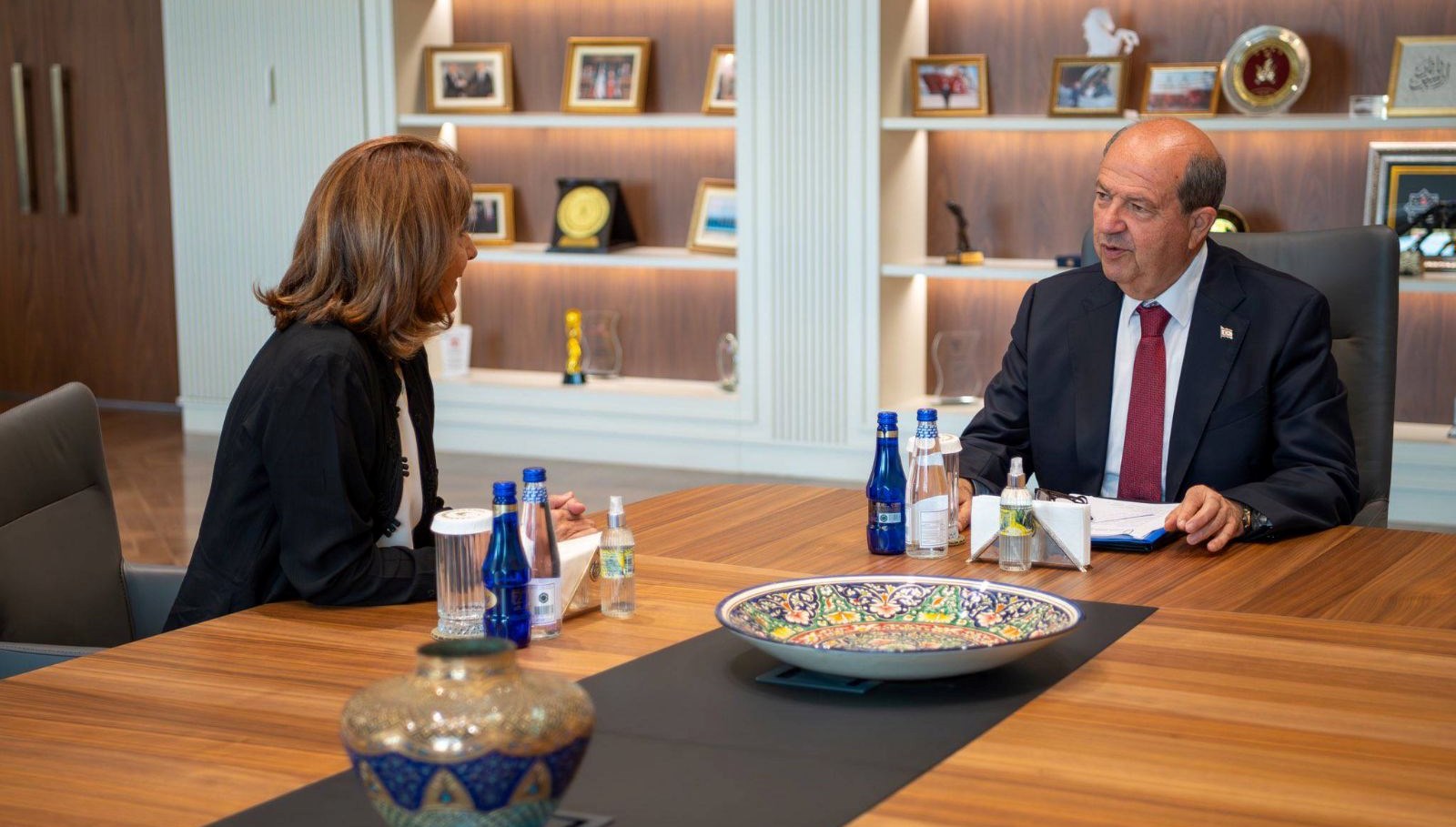 KKTC Cumhurbaşkanı Ersin Tatar’ın Birleşmiş Milletler (BM) Genel Sekreteri Antonio Guterres’in Kıbrıs Şahsî Temsilcisi Maria Angela Holguin Cuellar ile gerçekleştirdiği baş başa görüşme tamamlandı.