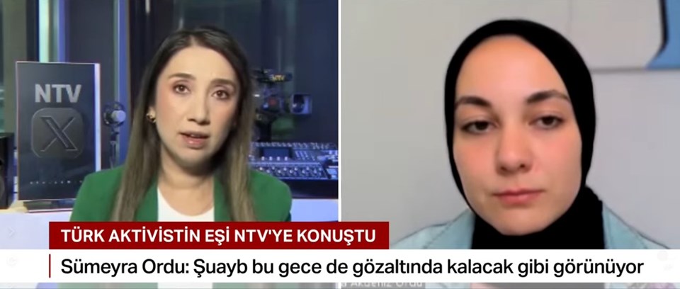 İsrail’de hudut dışı edilmeyi bekleyen Ordu’nun eşi Sümeyra Akdeniz Ordu, NTV muhabiri Melike Şahin’e açıklamalarda bulundu.