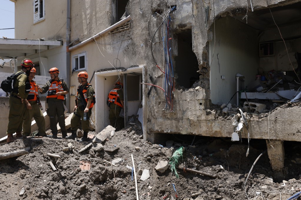 İsrail askerleri Beyt Şean’da İran’ın vurduğu binadaki hasarı denetim ediyor.