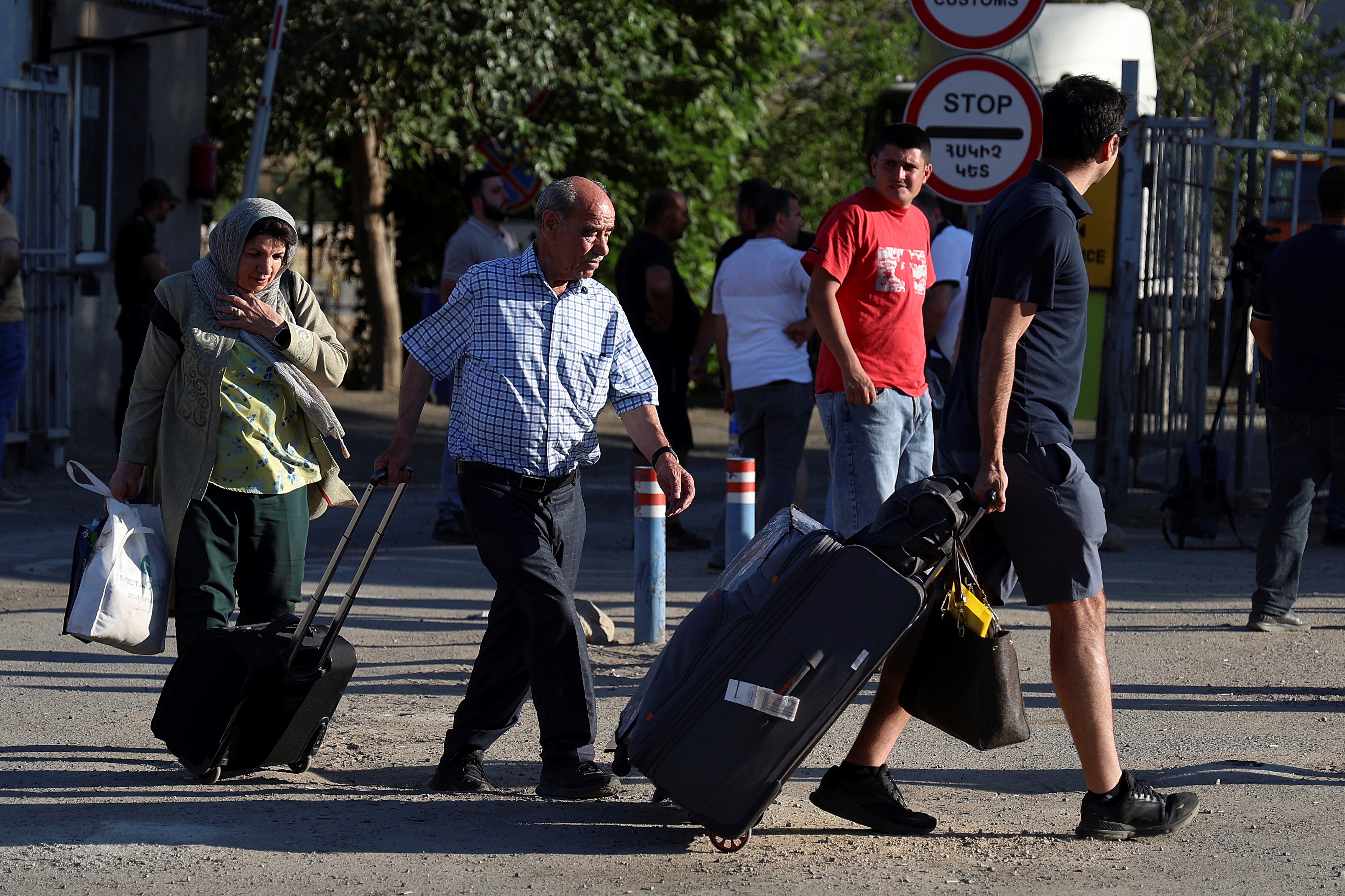 Ülkeden ayrılan İranlılar, Ermenistan sonundaki hudut geçiş noktasında toplanıyor.
