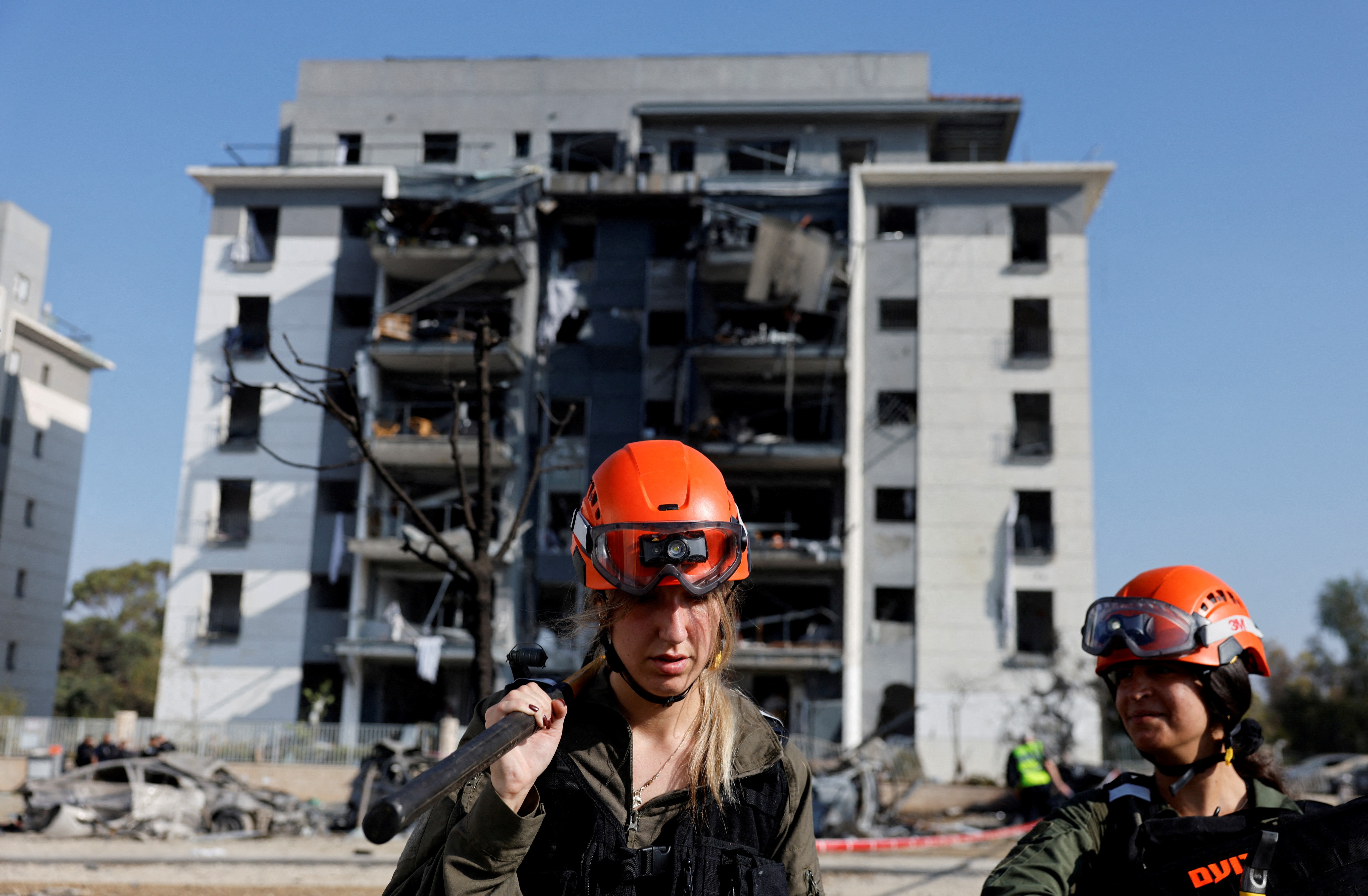İsrailli askerler, İran’ın vurduğu bölgelerde çalışma yürütüyor.